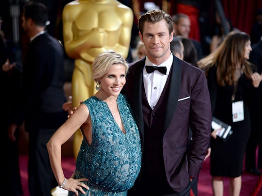The couple married in 2010 and also have a 22-month-old daughter, India Rose. Hemsworth and his wife recently walked the Oscars red carpet together (he presented), with Pataky's baby bump swathed in a sparkly green Elie Saab gown.